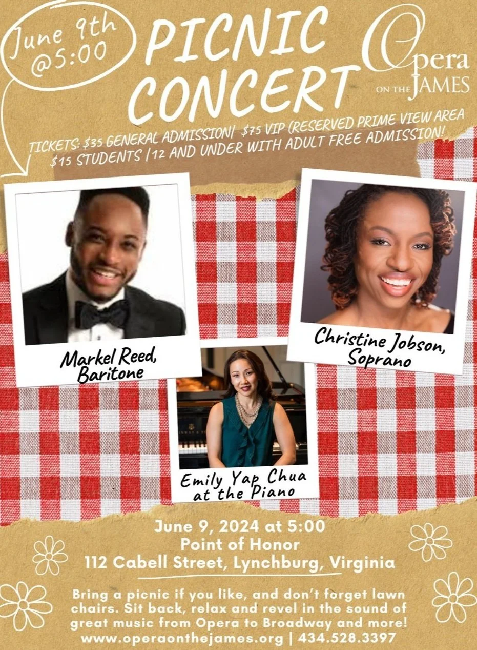 Sunday, June 9 at 5:00pm, enjoy a summer evening filled with beautiful music at our Picnic Concert. Featuring Markel Reed and Christine Jobson, it's the perfect way to celebrate with family and friends.